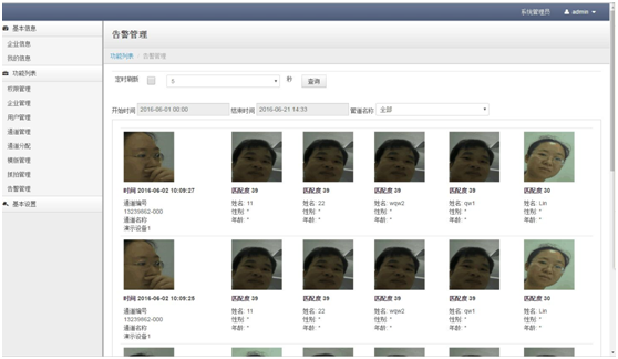 ● 接收大量前端的比对结果,对报警信息进行分类管理,便于查看管理;